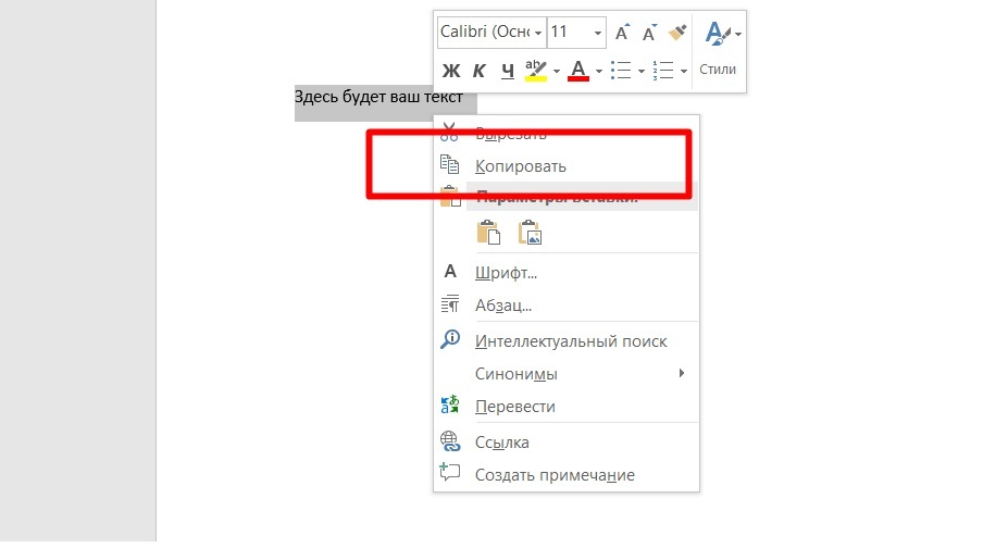 Предварительно скопируйте заготовленный текст. Для этого поместите его в редактор, например, MS Word или блокнот. Выделите, а затем нажмите «Копировать», или «Ctrl + C».
