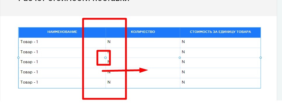 Чтобы изменить ширину столбцов, кликните по таблице 1 раз левой кнопкой мыши. Затем наведите курсор на границу столбцов в области круга, зажмите левую кнопку мыши и отрегулируйте ширину.