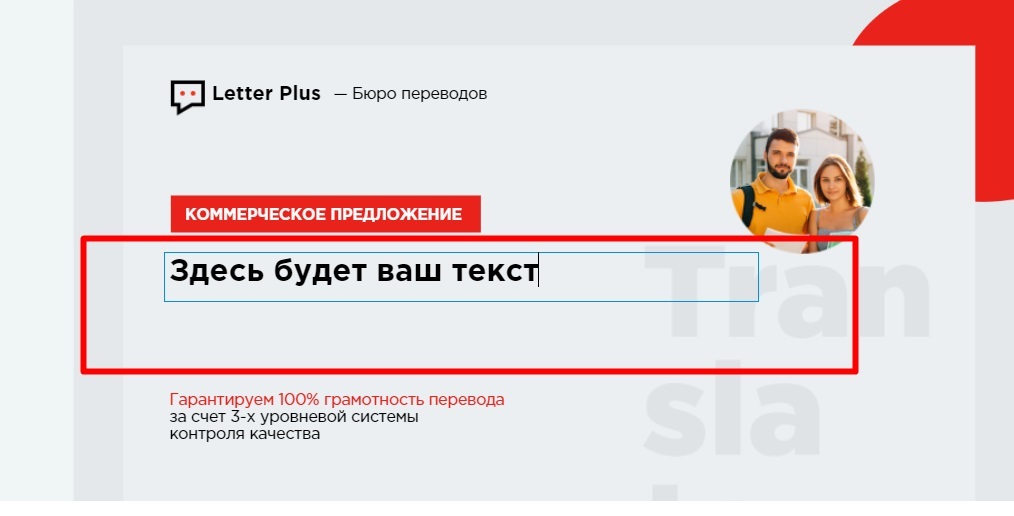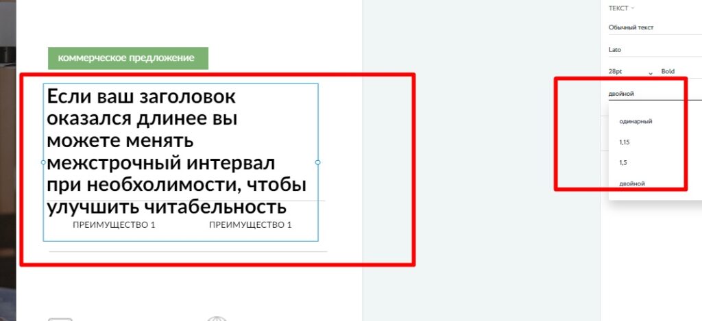 Чтобы дизайн сохранился и элементы органично сочетались, придерживайтесь объема текста, который был в шаблоне. Если он будет меняться, воспользуйтесь функцией межстрочного интервала для повышения читабельности.