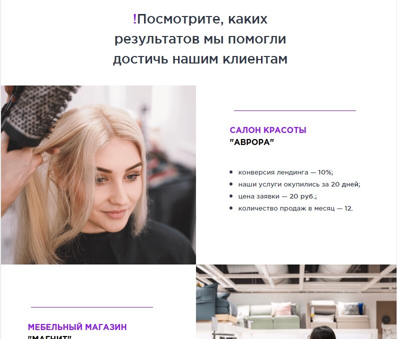 Кейсы — ваша «тяжелая артиллерия» в борьбе за потенциального клиента. Покажите в КП реальные примеры работ с измеримыми показателями (конверсия, количество лидов, пр.). Позвольте клиенту мысленно прикоснуться к результату.